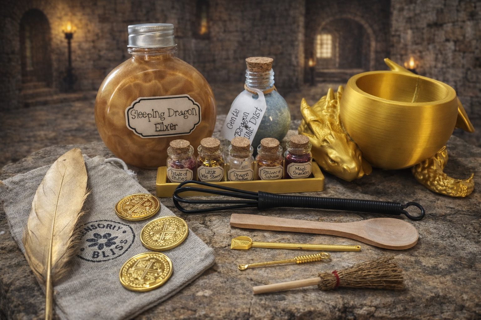 The Sleeping Dragon Potion Kit invites children into a world of imaginative play, sensory exploration and gentle affirmation magic. Designed to spark creativity and confidence, this enchanting kit allows little potion makers to mix, swirl and create spells of their very own.
